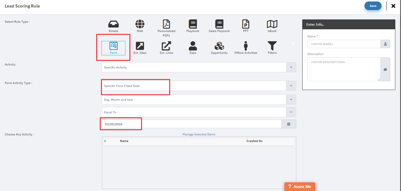 A new scoring rule allows you to award points to contacts who filled out a specific form on a specific date, enabling more precise and time-sensitive scoring.