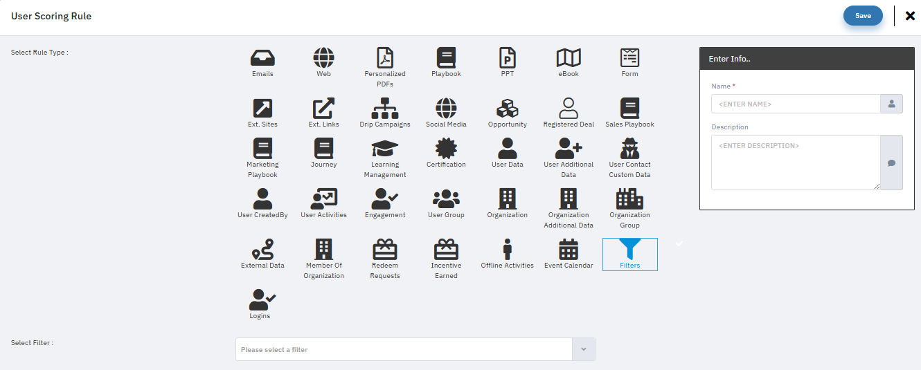A Filter option is now available on the User Scoring page for more precise scoring assignments.