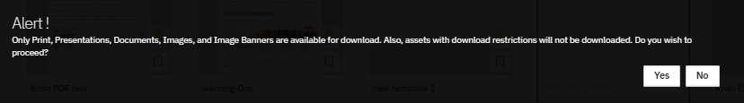 Note: Restricted assets cannot be downloaded through this feature. If restricted assets are selected, the system will display an alert message indicating that those assets cannot be downloaded. Users should deselect restricted assets before proceeding with the download.
