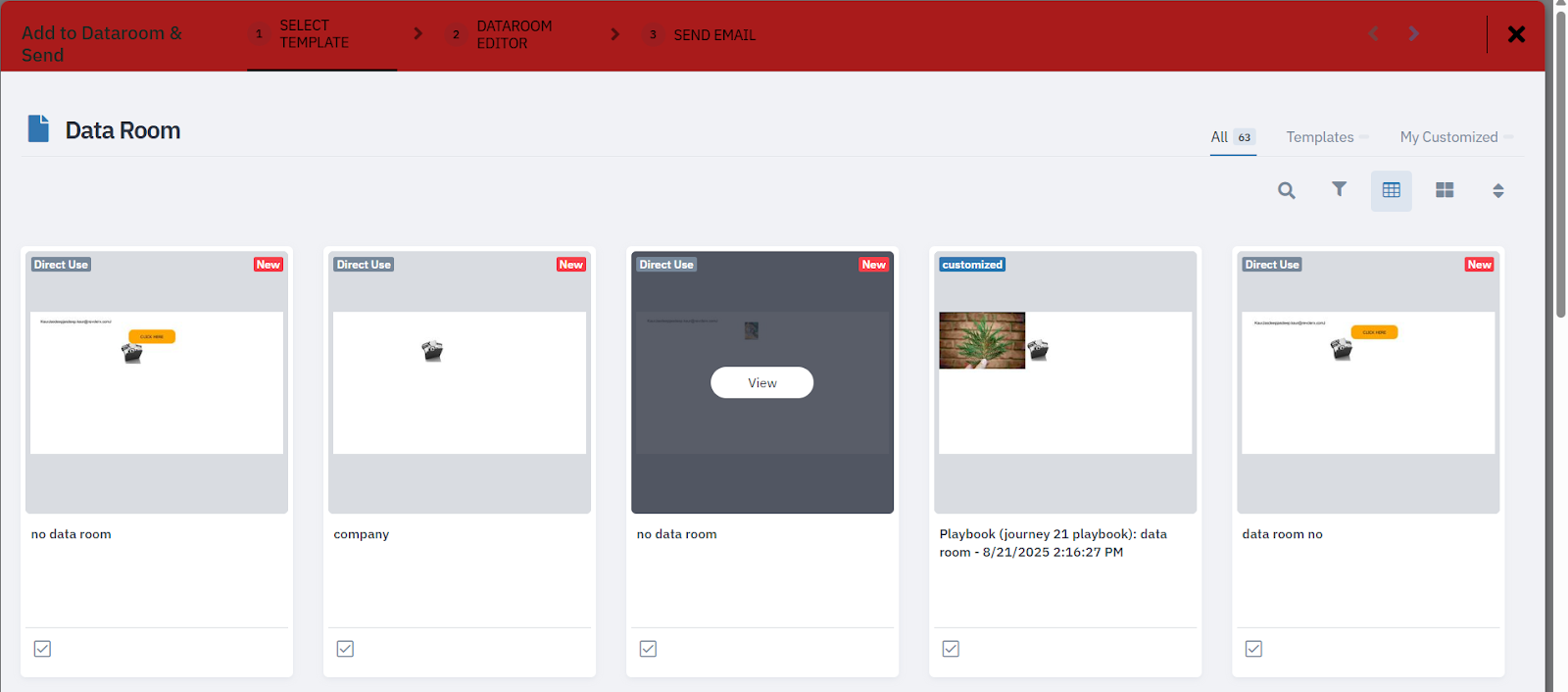 - Choose the desired Dataroom template from available options