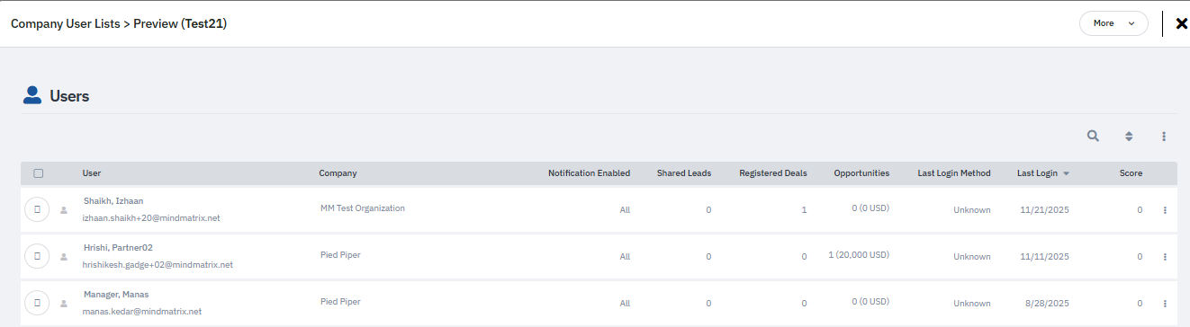 Note: Only administrators have the ability to create Company User Smart Lists. If you do not have access to this feature, contact the administrator at your company, or your Mindmatrix consultant, for more information.