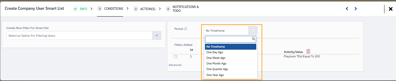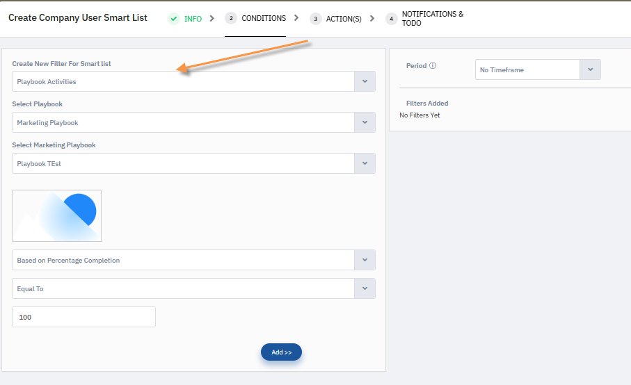 In the example below, a filter is created based on users who have completed a specific Playbook campaign of the Marketing playbook type.