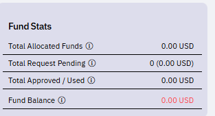 Pending for Reimbursement: Displays the total value of approved fund requests that have not yet been submitted for reimbursement.