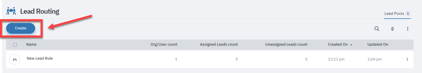 9. Once your lead pool is created, you can see User/Orgs assigned to the pool, any assigned leads, unassigned leads. Click the rule again to edit it/make changes.