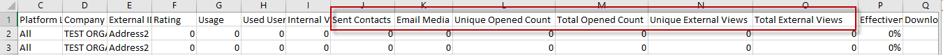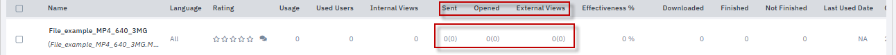 A new enhancement has been added to the Asset Report section for Videos, Images, and Non-Personalized Documents, improving how statistical data is displayed and exported. Key Changes: In-Portal Display: On the Asset Report page, under the columns Sent, Opened, and External Views, statistics now display two values in a single column format, such as 2 (5), where: