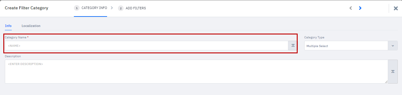 - For creating new Filter Category, enter the 'Category Name' and click on the Next.