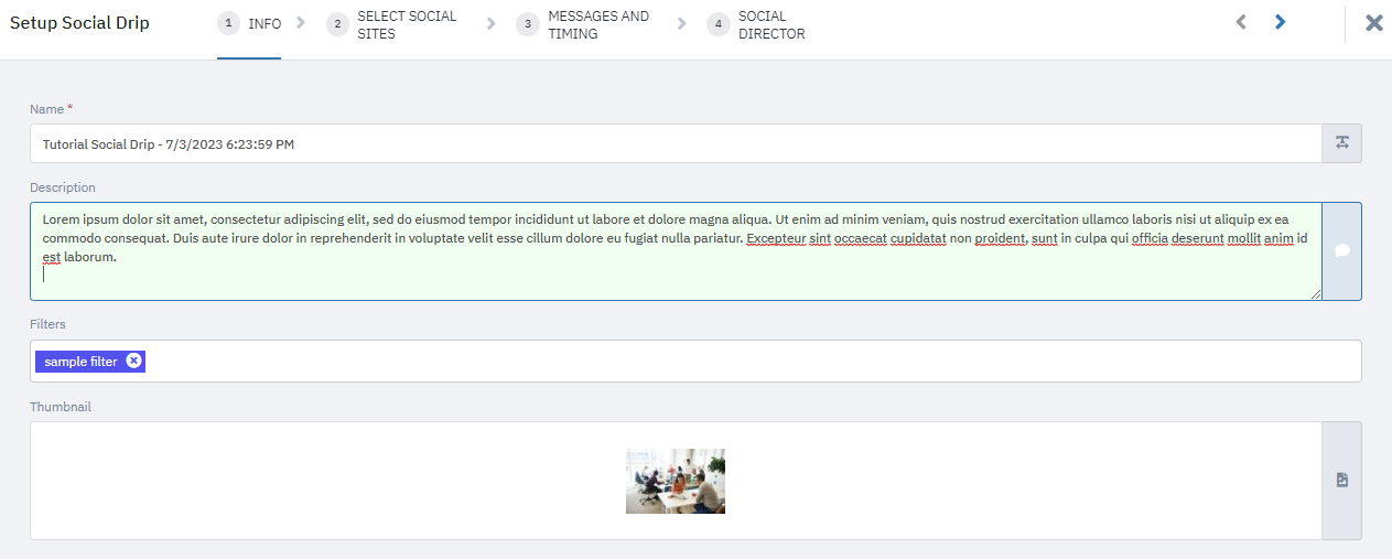 For the remaining steps, proceed as if you were creating a social drip campaign template.