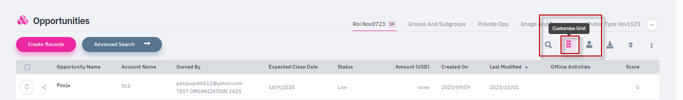 A new enhancement has been introduced on the Opportunities page that allows Super Admin users to fully customize the grid column layout, providing greater flexibility in structuring the opportunity list view.
