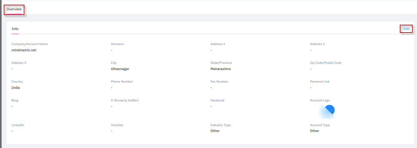 The Overview Page in V5 provides a comprehensive, consolidated view of selected accounts, displaying all account fields and related information in an organized, accessible format. This enhanced overview eliminates the need for users to navigate through multiple tabs or screens to access complete account information.