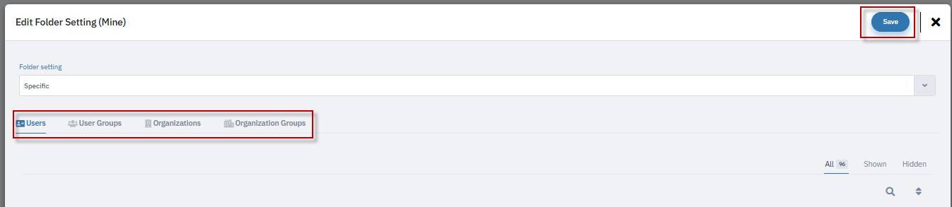 Individual Users: If visibility is set to specific users, only the selected users can see the folder. Other users cannot view the folder.