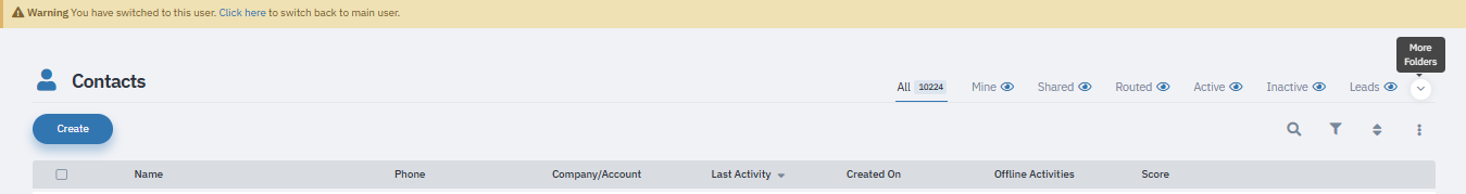 Super Admin users can now control the visibility of tabs (folders) on the Contacts and Accounts pages for users within the current company. This enhancement allows granular control over which folders are visible to specific users, user groups, organizations, or organization groups.