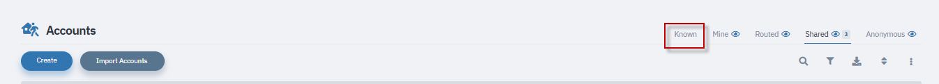 Accounts: Known (default, always visible)